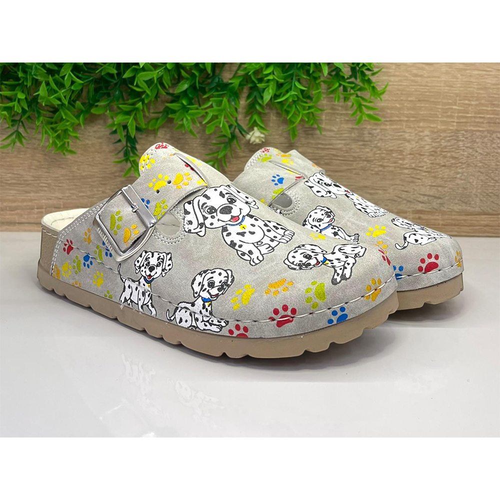 Sive anatomske natikače s kožnom tabanicom i uzorkom psića