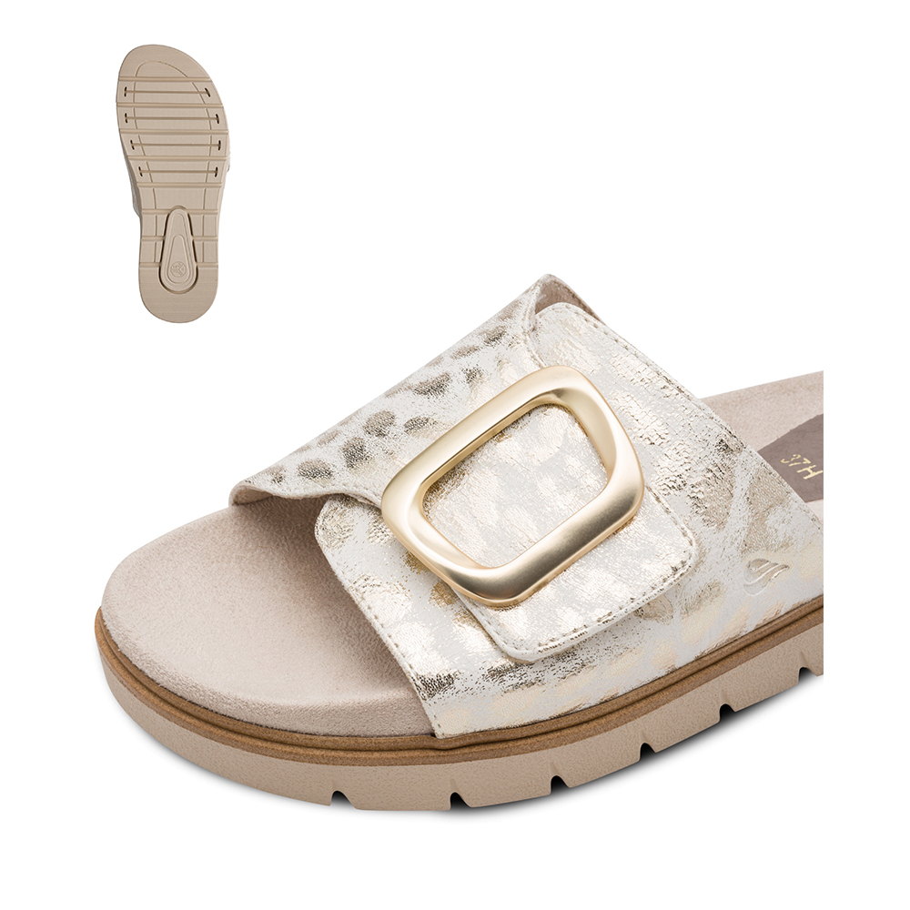 Jana natikače s čičak remenom – bež/zlatne casual chic sandale