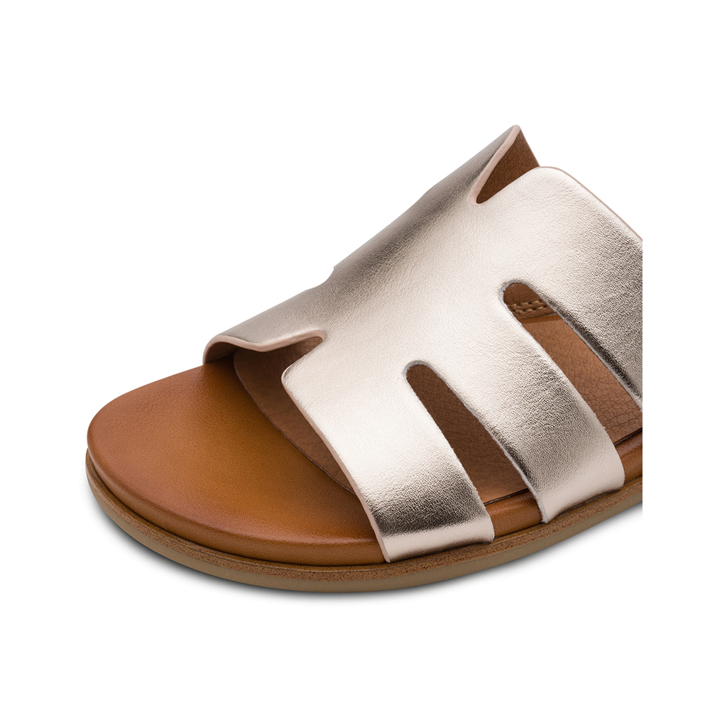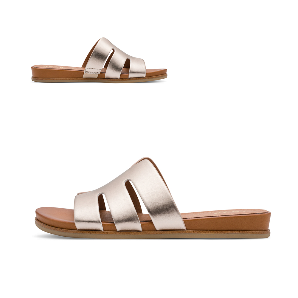 Jana ženske natikače savršen su izbor za žene koje žele spoj elegancije, jednostavnosti i udobnosti tijekom toplijih dana. Minimalistički dizajn s modernim izrezima daje im poseban vizualni identitet, dok zlatna boja unosi dozu luksuza u svakodnevni stil.