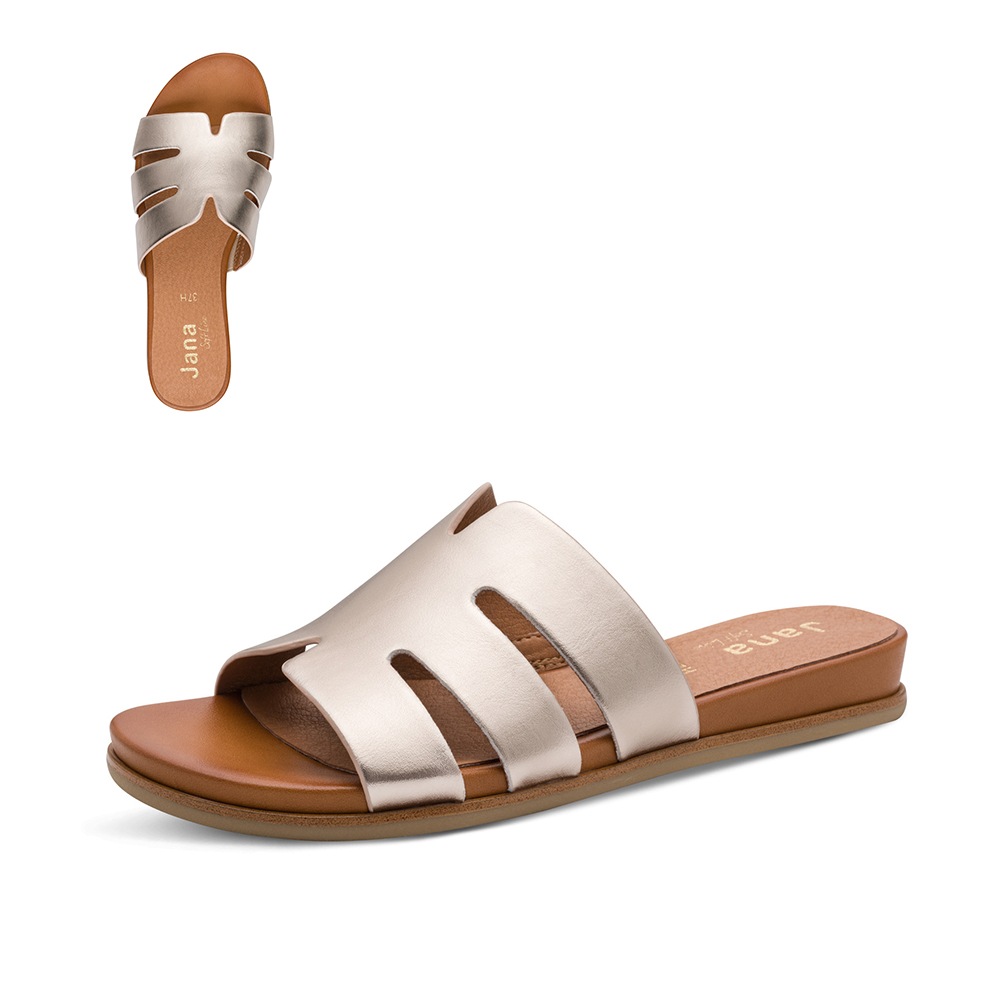 Udobne i moderne Jana natikače u zlatnoj boji – savršen izbor za lagane ljetne kombinacije i cjelodnevnu udobnost.