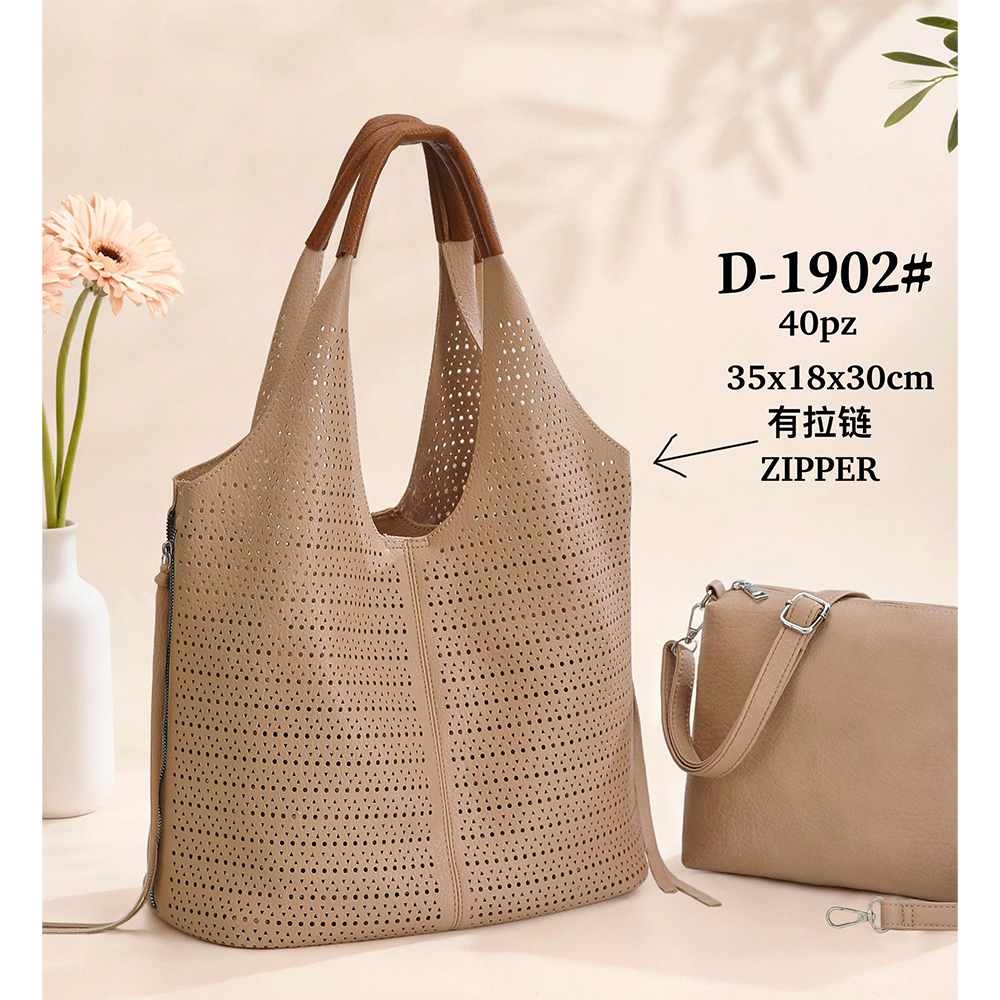 Velika mekana rupičasta torba sa duplim ručkama i ukrasnim perforacijama!