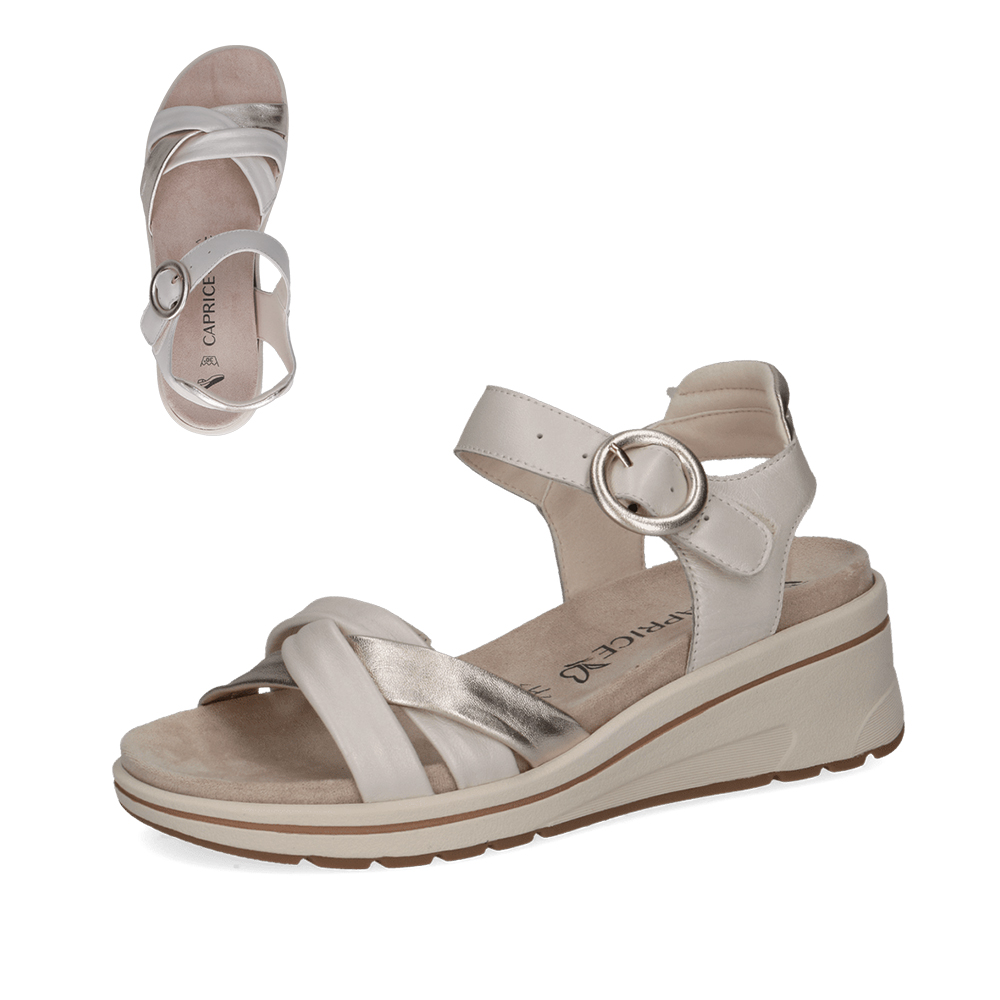 Elegantne Caprice ženske sandale od prirodne kože s udobnim đonom, savršene za svakodnevno nošenje tokom toplih dana.