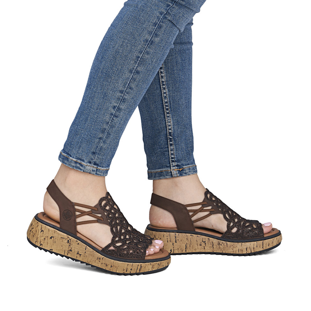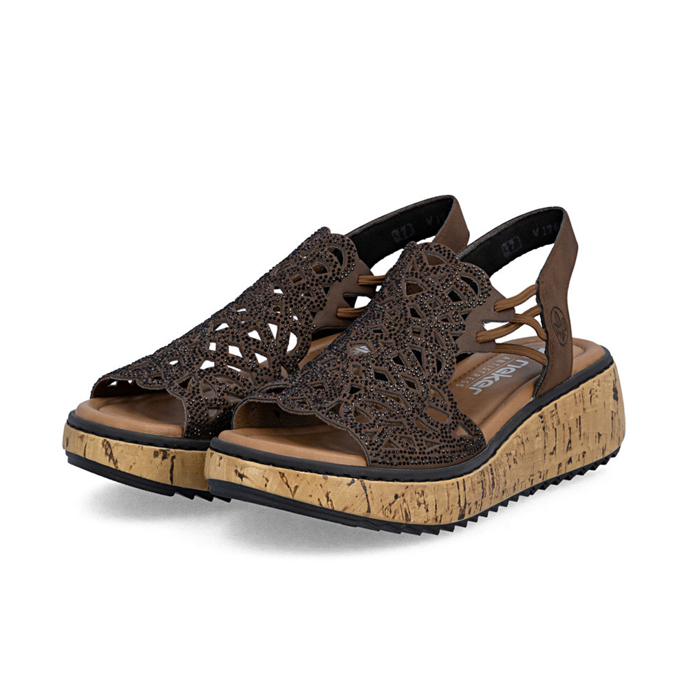 Otvorene sandale platforma potplata sa ukrasnim strech vezicama posuta sjajnim kamenčićima brenda Rieker!