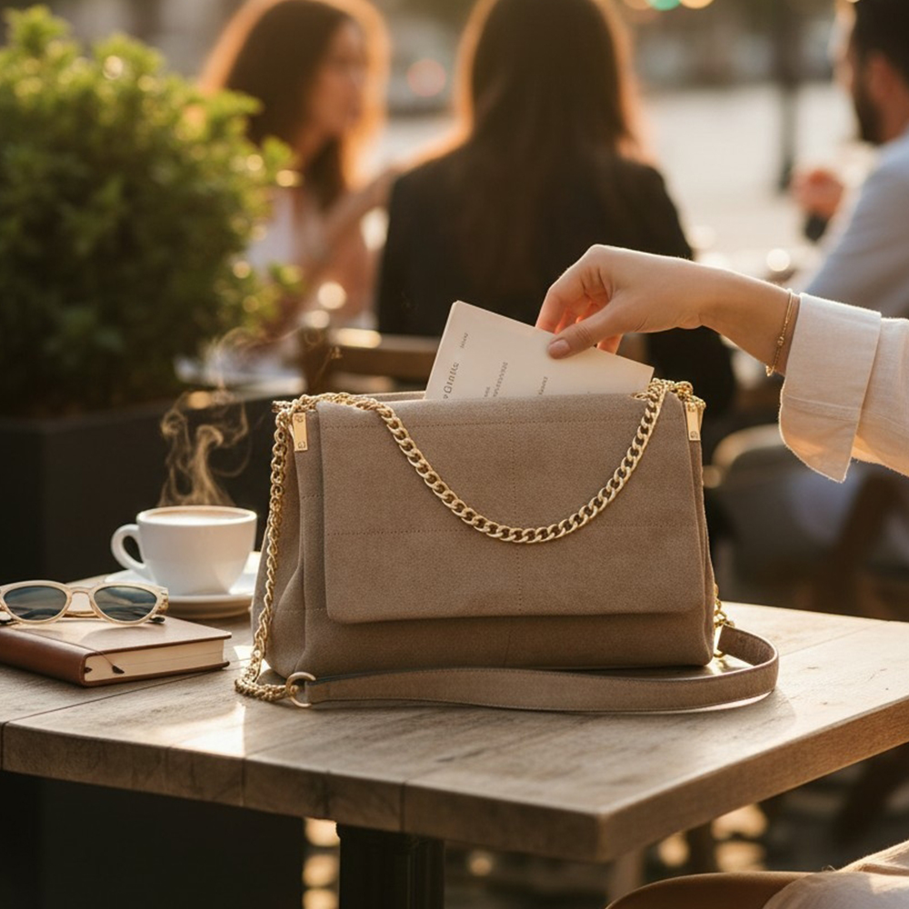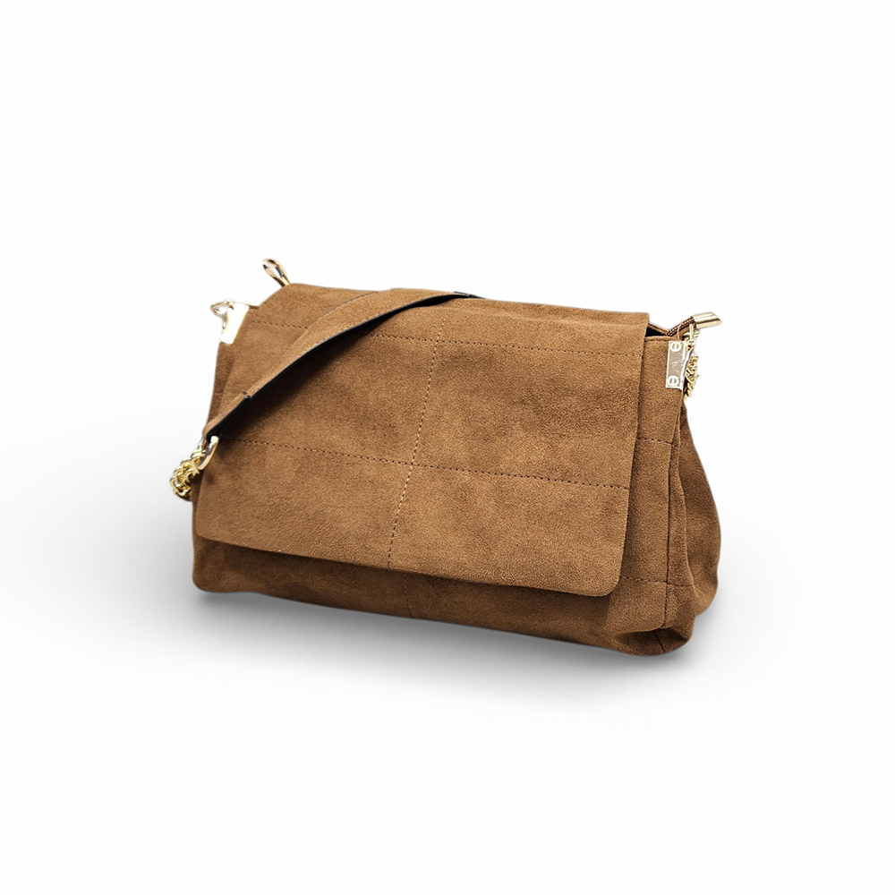 Moderan dizajn velur torbe srednje veličine sa preklop poklopcem i ukrasnim zaltnim alka remenom!