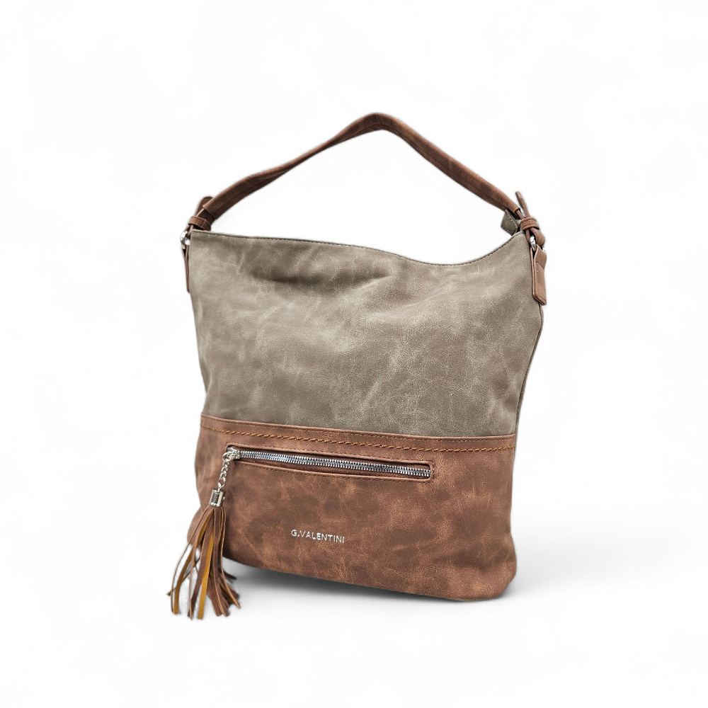 Elegantna torba ručke velur imitacije sa konjak umetkom!