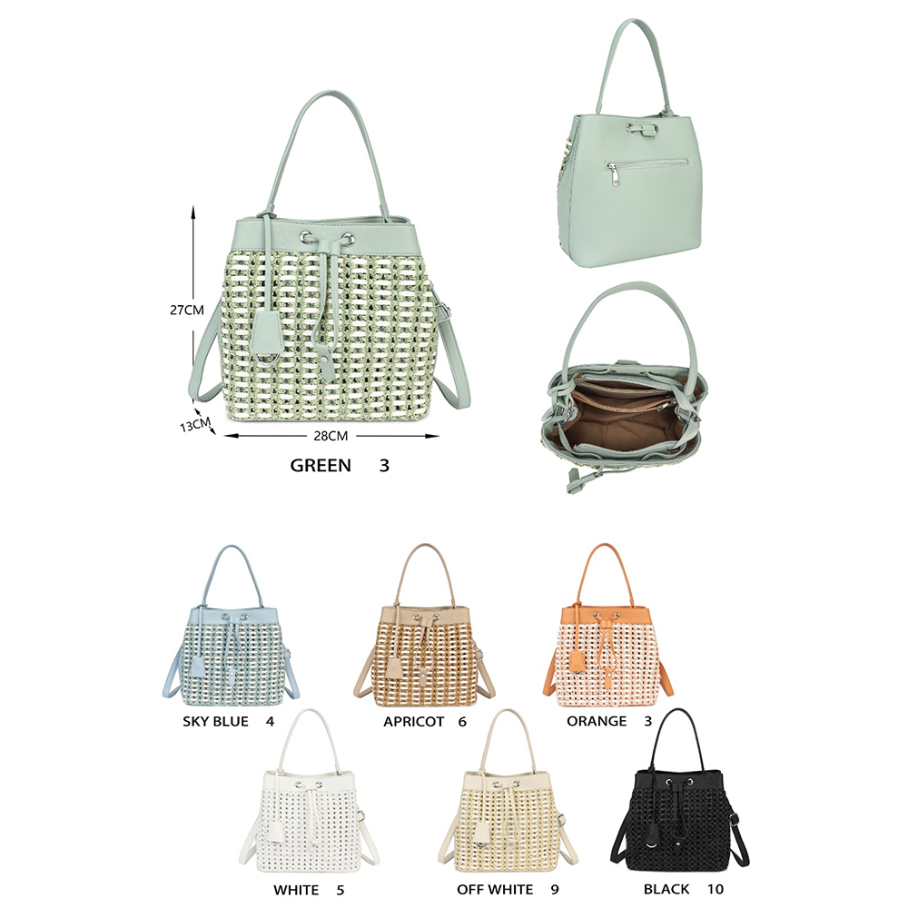 Izrađena od kvalitetnog umjetnog materijala s naglašenim pletenim detaljima, torba odiše luksuznim izgledom i dugotrajnošću. Praktično zatvaranje pomoću vezice osigurava sigurnost vaših stvari, dok čvrsta ručka omogućuje udobno nošenje tijekom cijelog dana.