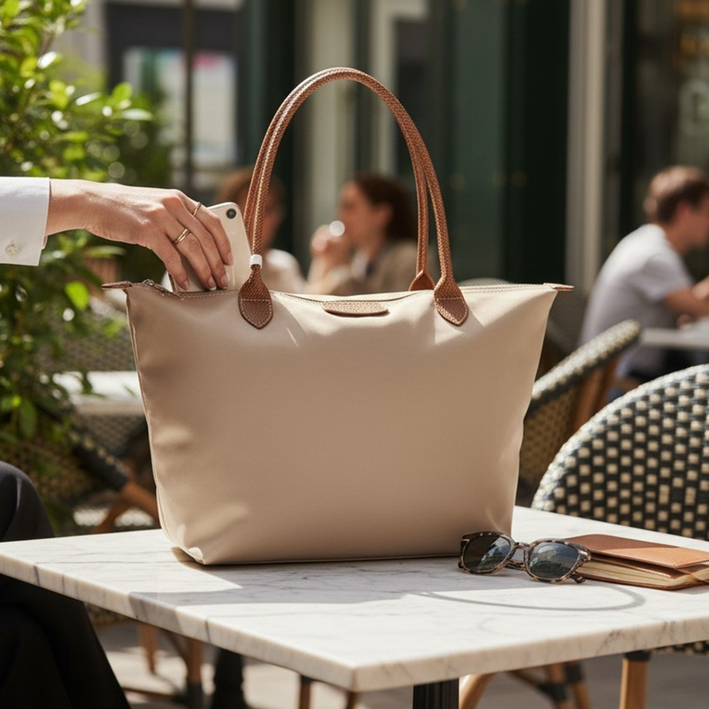 Ova moderna ženska shopper torba od umjetnog materijala i platna savršen je izbor za žene koje traže funkcionalnu, laganu i elegantnu torbu za svaki dan. Minimalistički dizajn i neutralne boje čine je lako uklopivom u sve modne kombinacije – od casual do poslovnog stila.