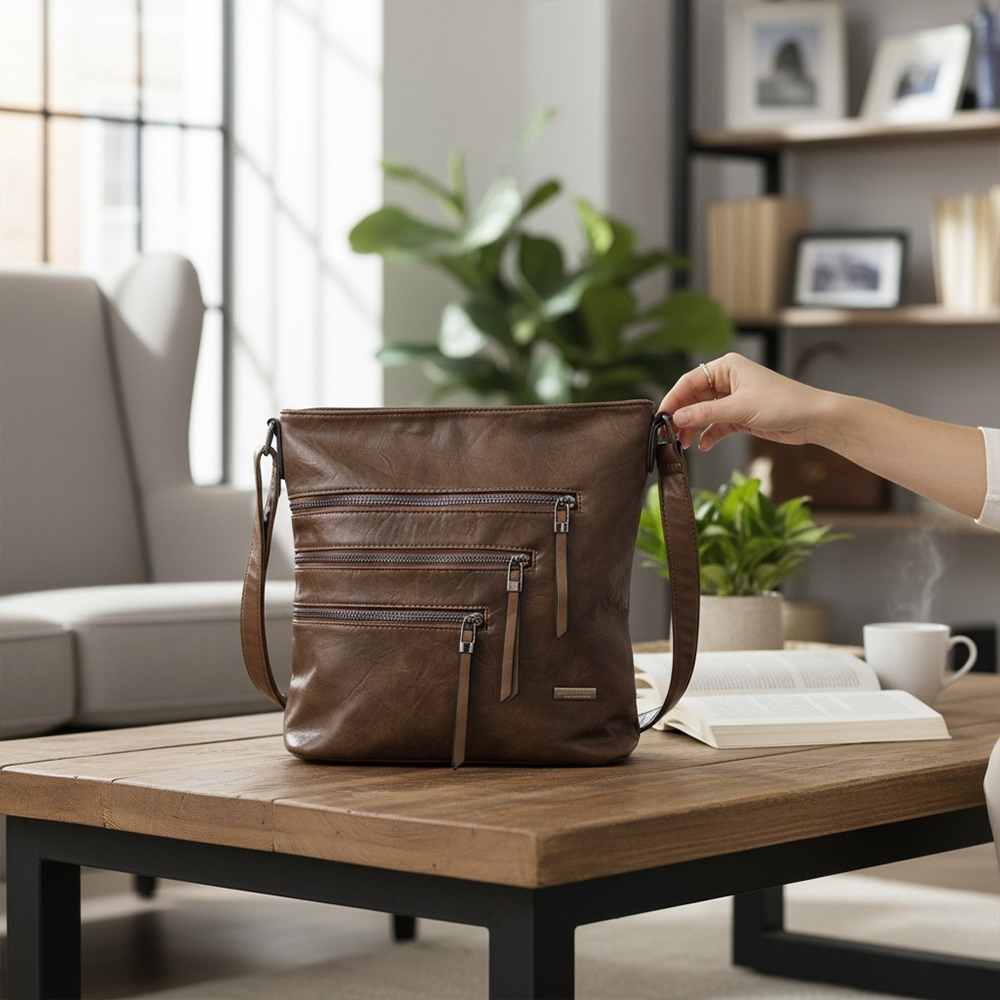 Torba je dizajnirana za žene koje traže praktičnost bez kompromisa u stilu. Više prednjih džepova s patentnim zatvaračem omogućuje organizaciju svih vaših stvari – od mobitela i novčanika do sitnica koje želite imati pri ruci.