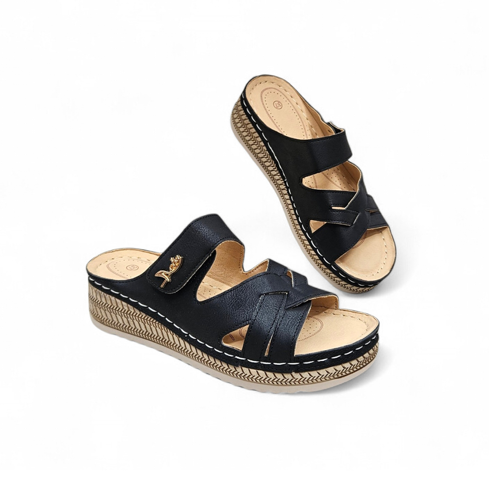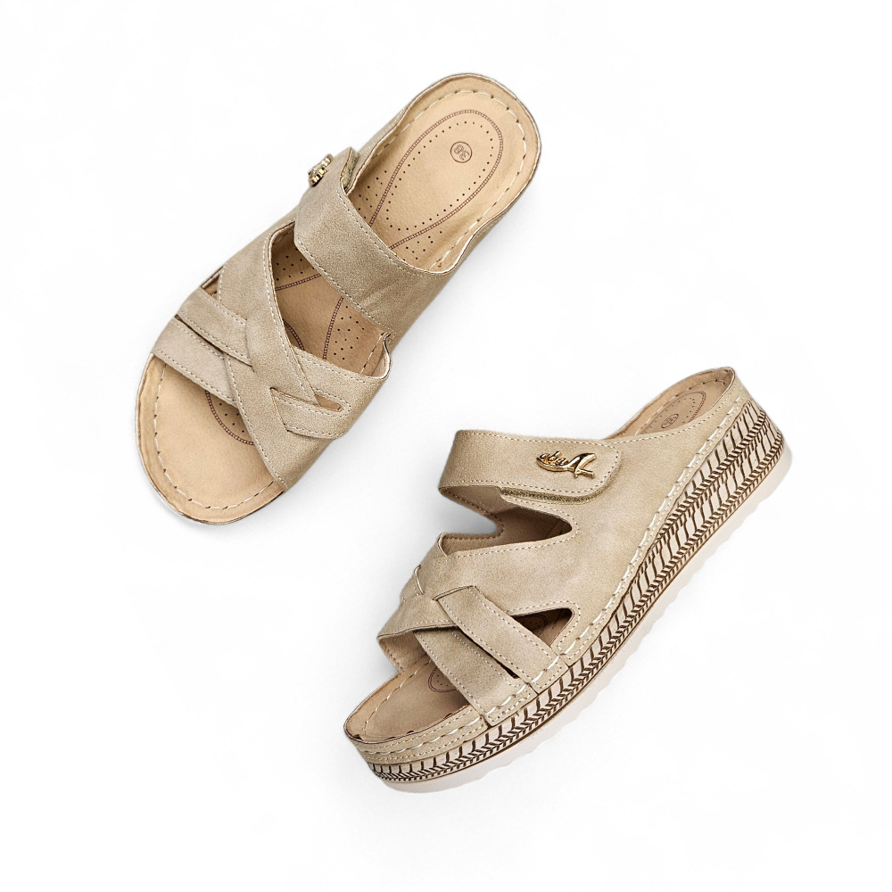 Elegantne i udobne ženske natikače s križnim remenima i stabilnim povišenim potplatom – jednostavne, lagane i spremne za svaki tvoj dan.