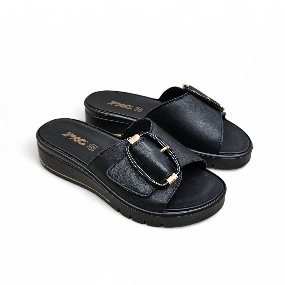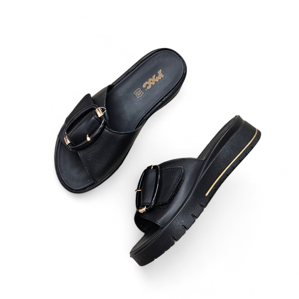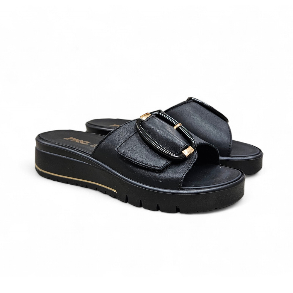 Ženske kožne natikače Imac donose spoj vrhunske udobnosti i modernog urbanog dizajna. Čisto crno gornjište dodatno je naglašeno elegantnim metalnim detaljem koji daje dozu sofisticiranosti bez pretjerivanja.