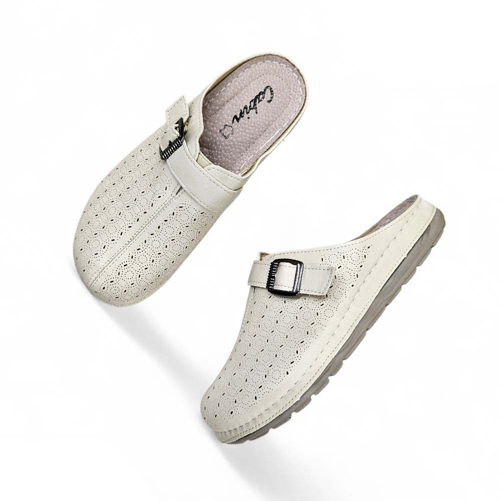 Udobne ženske natikače s kožnom tabanicom i prozračnim perforacijama. Dostupne u bež i crnoj boji – idealne za svakodnevno nošenje