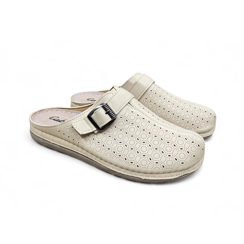 Ženske bež natikače s perforiranim uzorkom i kožnom tabanicom