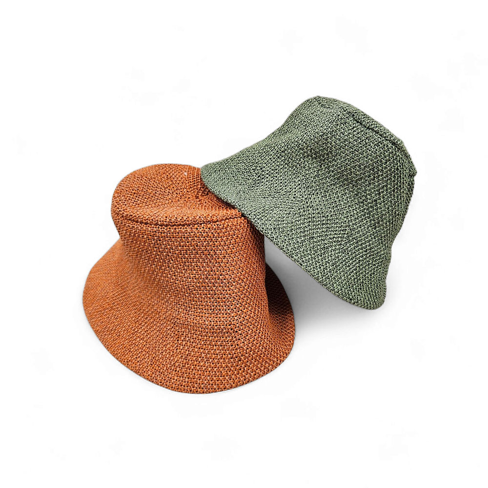 Moderan ženski pleteni ljetni šešir u bucket stilu s užim obodom. Dostupan u narančastoj i zelenoj boji – savršen za ljeto i casual kombinacije.